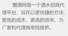 圈酒招商網(wǎng)是繼糖酒會之后的招商模式,為酒廠等生產經銷企業(yè)搭建一個更好、更快的酒水招商平臺